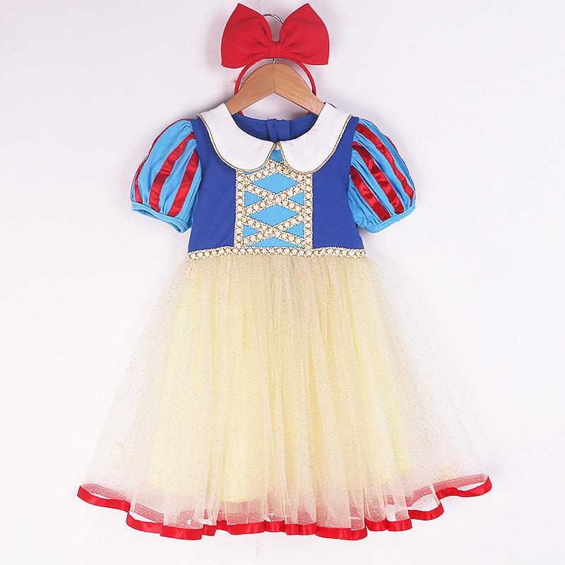 Летнее классическое платье «Белоснежка» с коротким рукавом для маленьких девочек - Наряд на день рождения 140 cm