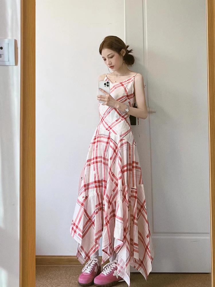 Летнее клетчатое облегающее платье-халтер 2025 - Женская мода XL 60-67.5 kg