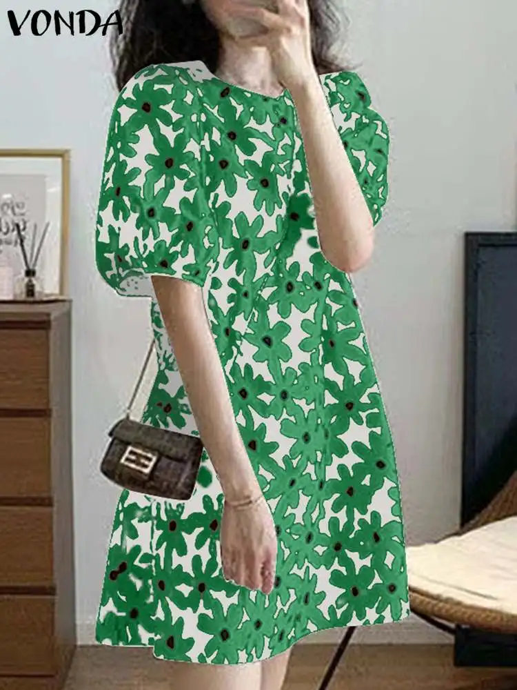 Летнее мини-платье VONDA 2023, модное женское элегантное платье с коротким рукавом-фонариком и цветочным принтом, пляжные платья, женское платье...