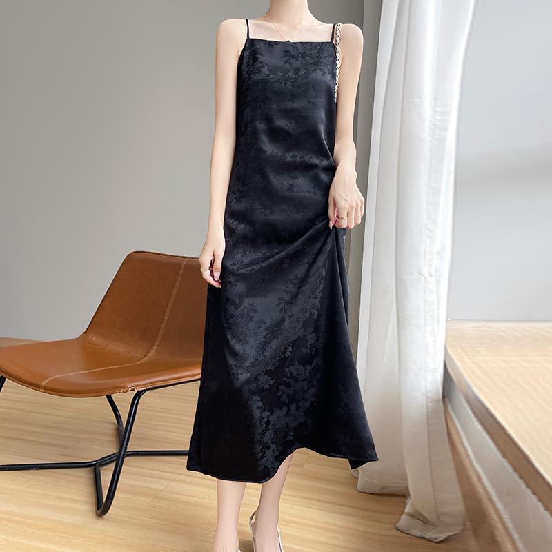 Летнее новое стильное женское платье из смешанного шелка тутового шелкопряда с тонкой талией, средней и длинной длины, для поездок на работу, модное дышащее повседневное платье XXL чёрный