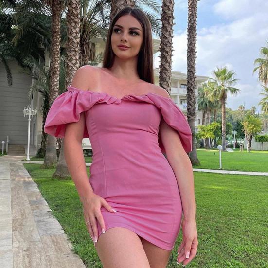 Летнее платье Шикарный пузырьковый рукав Однотонное леди Бальное платье Свадебная вечеринка Летнее платье Женское мини-платье Женская одежда