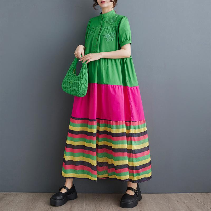 Летнее платье больших размеров, винтажное модное свободное платье с вышивкой бабочки, яркие цвета, длинные марлевые платья One Size зелёный