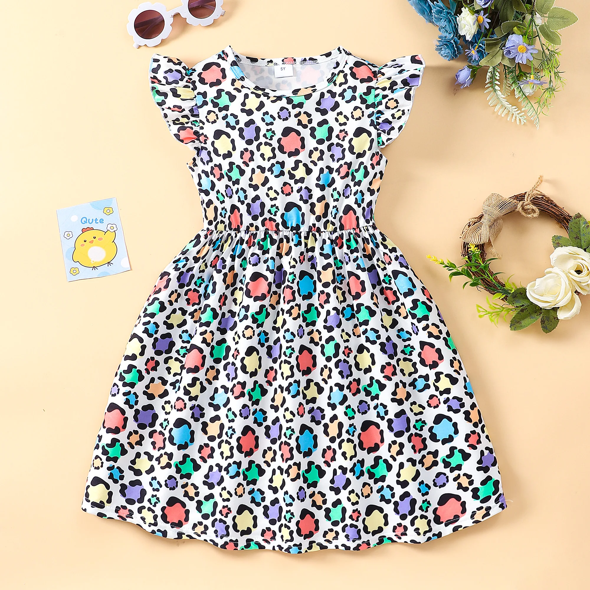 Летнее платье, детская одежда для девочек, разноцветные пятна, повседневные модные платья с короткими рукавами на день рождения для маленьких девочек 2, 3, 4, 5, 6, 7, 8 лет