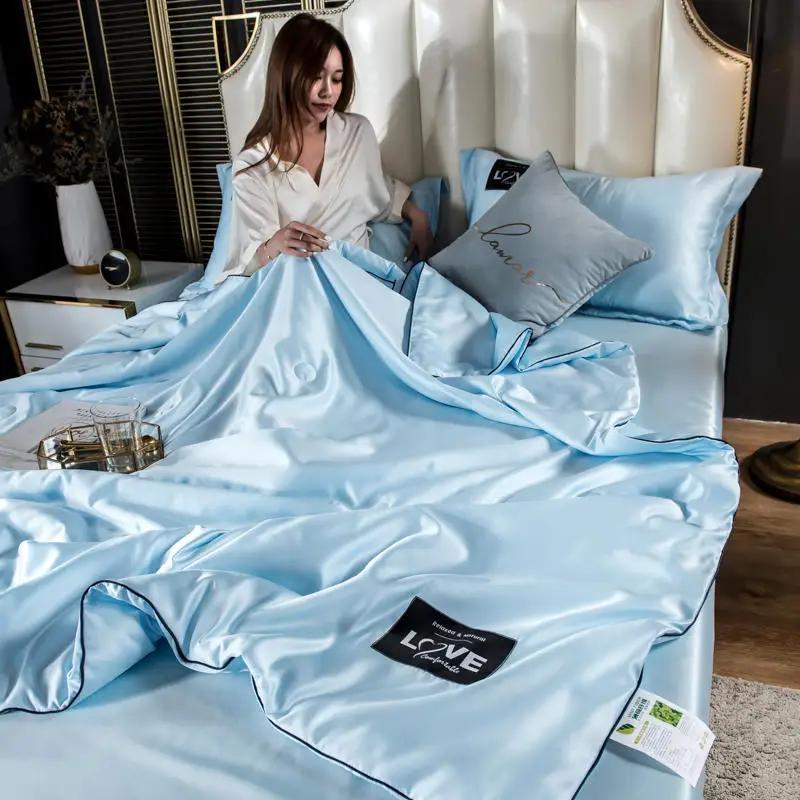 Летнее прохладное одеяло из стираного шелка с кондиционером, однотонное летнее одеяло для одного и двоих человек. 150x200cm