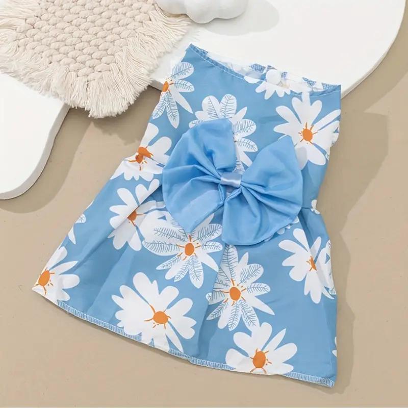 Летнее тонкое платье для собак, цветочное платье принцессы для домашних животных, одежда для собак и кошек небольшого размера с бантом для кошек S синий
