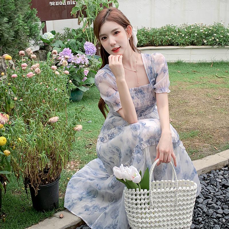 Летнее французское цветочное длинное платье: Стройнящий, Элегантный, Сладкий Принцессный Стиль Small