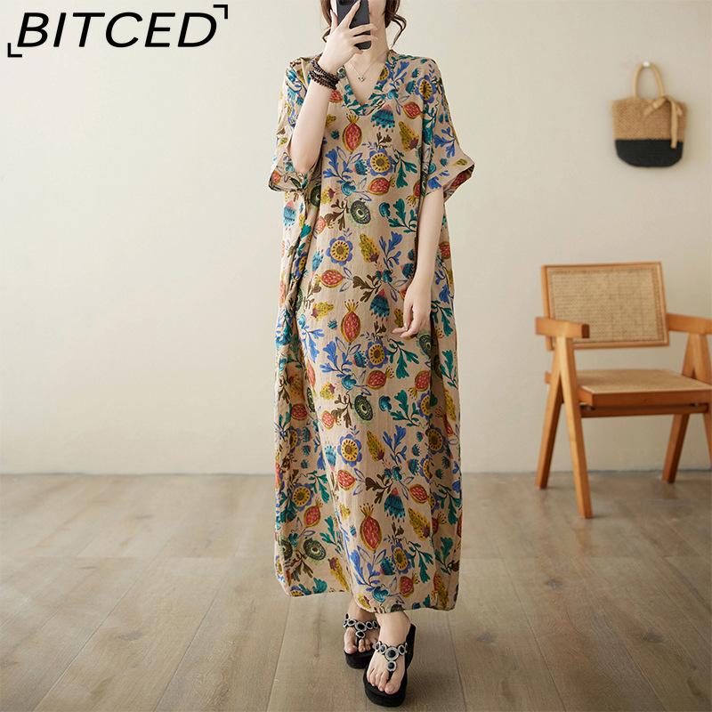 Летнее хлопковое льняное платье большого размера с v-образным вырезом, пляжное платье в литературном праздничном стиле, длинный женский халат в стиле ретро