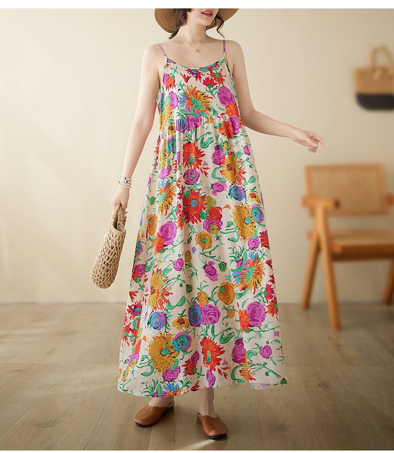 Летнее хлопковое льняное художественное ретро свободное милое платье без бретелек без рукавов А-силуэта с подтяжками повседневные платья XXL