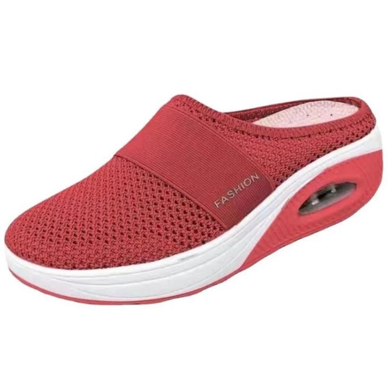 Летние Новые Большие Ленивые Шаг Вперед Баотоу Сетчатые Шлепанцы на Толстой Подошве для Женщин, Шлепанцы на Танкетке для Женщин 41 красный