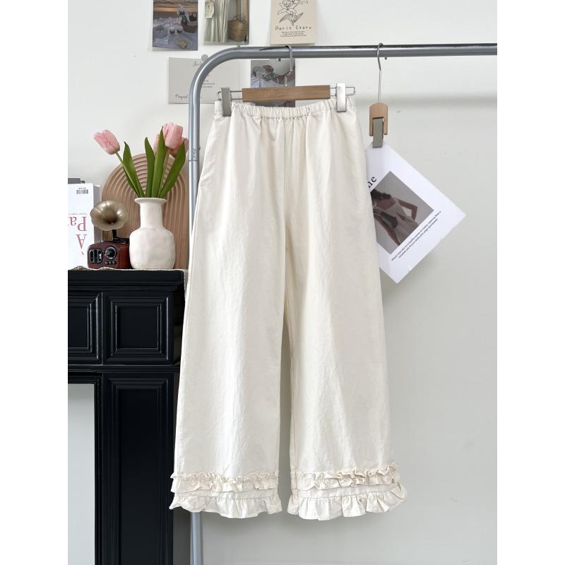 Летние Тонкие Кружевные Брюки с Деревянными Ушками, Универсальные, с Эластичной Талией, Прямые, в Горошек, Однотонные, Широкие, Повседневные, Модные 4XL покинуть белый