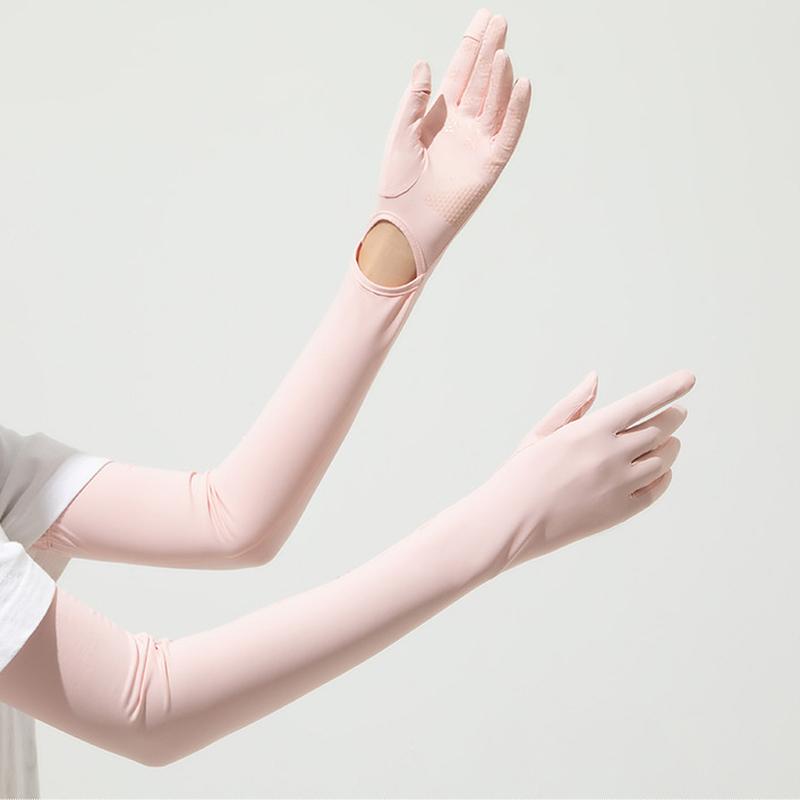 Летние Уличные Защита от УФ Лучей Пальцевые Длинные Перчатки UPF50+ Солнцезащитные С Сенсорным Экраном Рукава для Вождения Велосипеда для Путешествий на Открытом Воздухе розовый