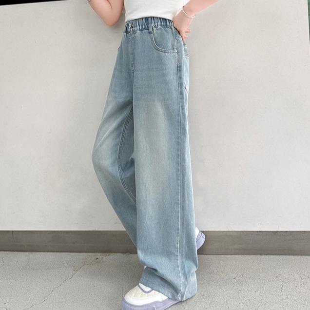 Летние брюки Тонкие брюки для девочек Летняя мода Прямые Широкие брюки Тенсель Джинсы 170