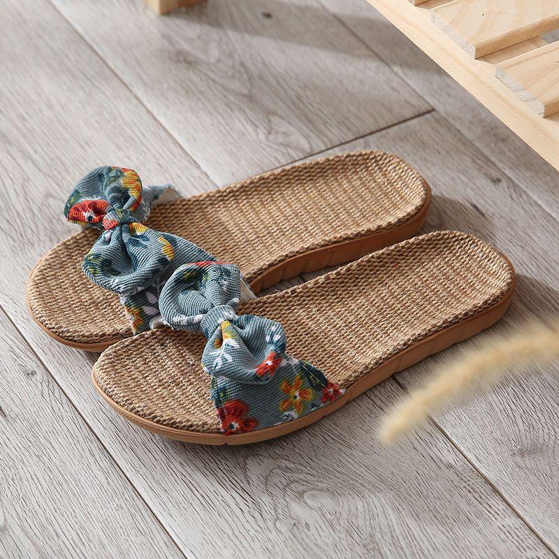 Летние женские вельветовые льняные туфли на платформе с бантом, дышащие износостойкие тапочки ручной работы для спальни 39-40 зелёный