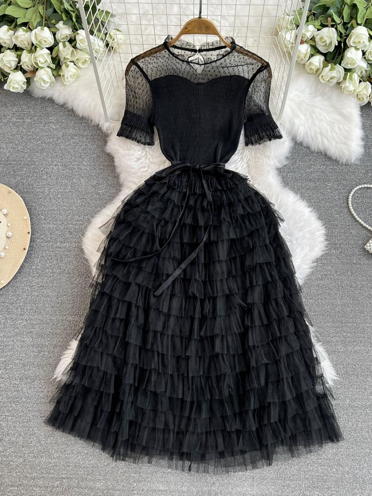 Летние женские винтажные сетчатые лоскутные платья для торта, модное эластичное длинное вечернее платье миди S чёрный
