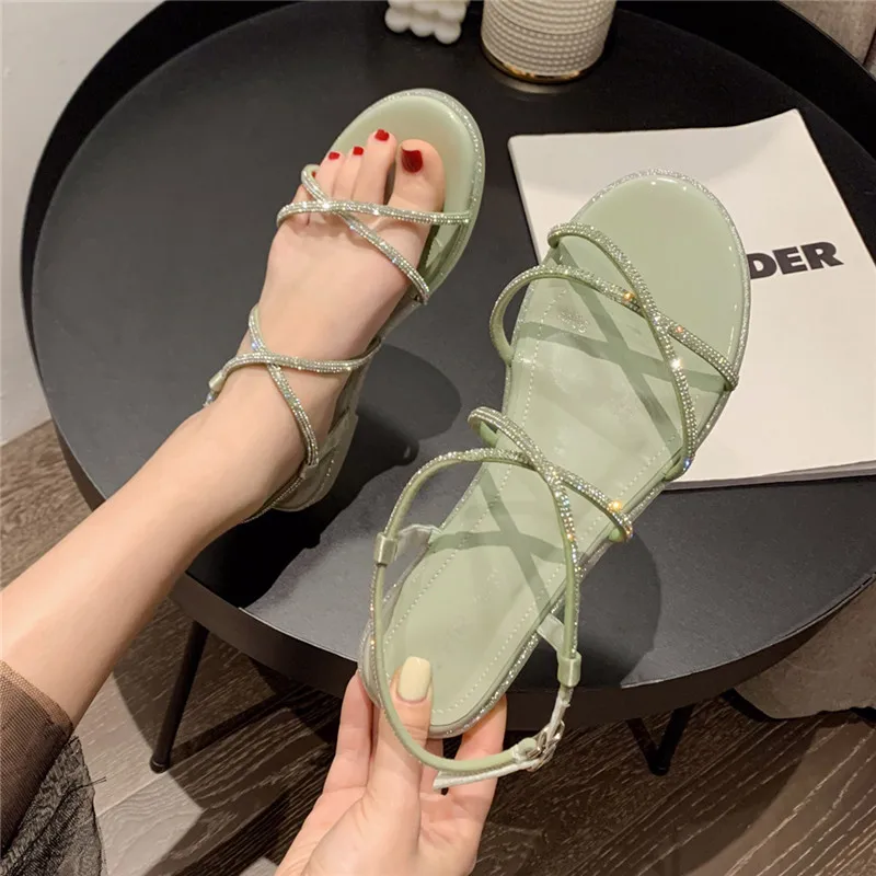 Летние женские сандалии на плоской подошве 2020 модные стразы жиров в римском стиле женская обувь с перемычкой для большого пальца; Туфли-лодочки в римском стиле; Женские сандалии; Женская пляжная обувь; Сезон лето