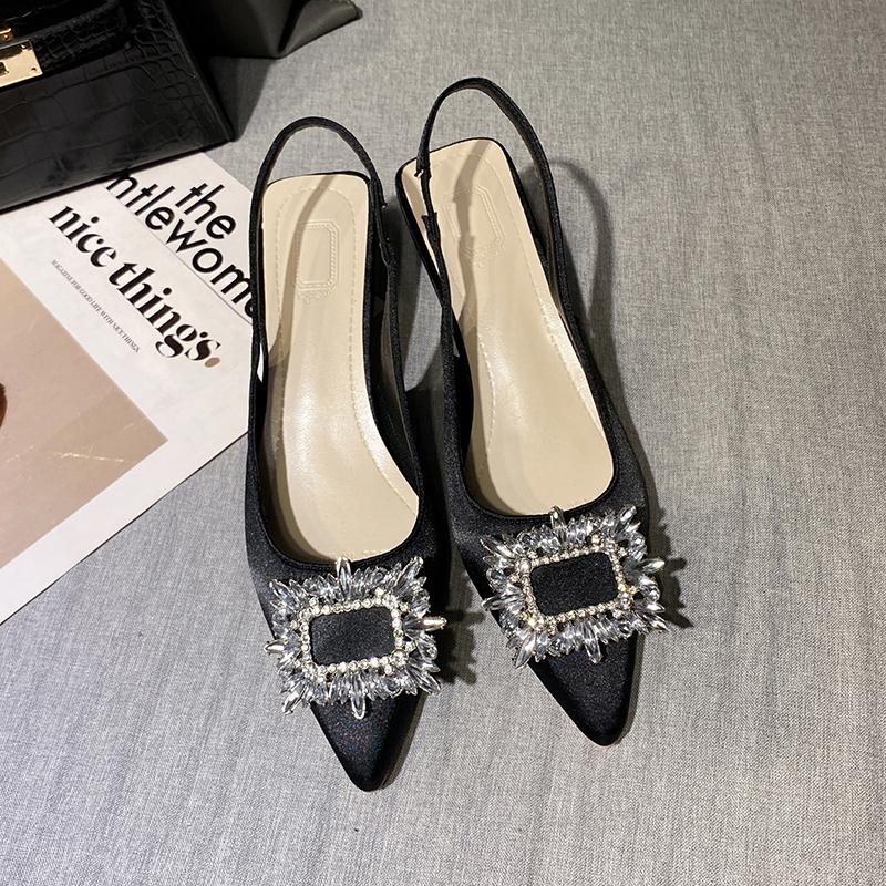 Летние женские сандалии, новая женская обувь с острым носком, неглубокие туфли телесного цвета с розовыми бриллиантами, туфли на низком каблуке с ремешками на спине, женские модельные туфли