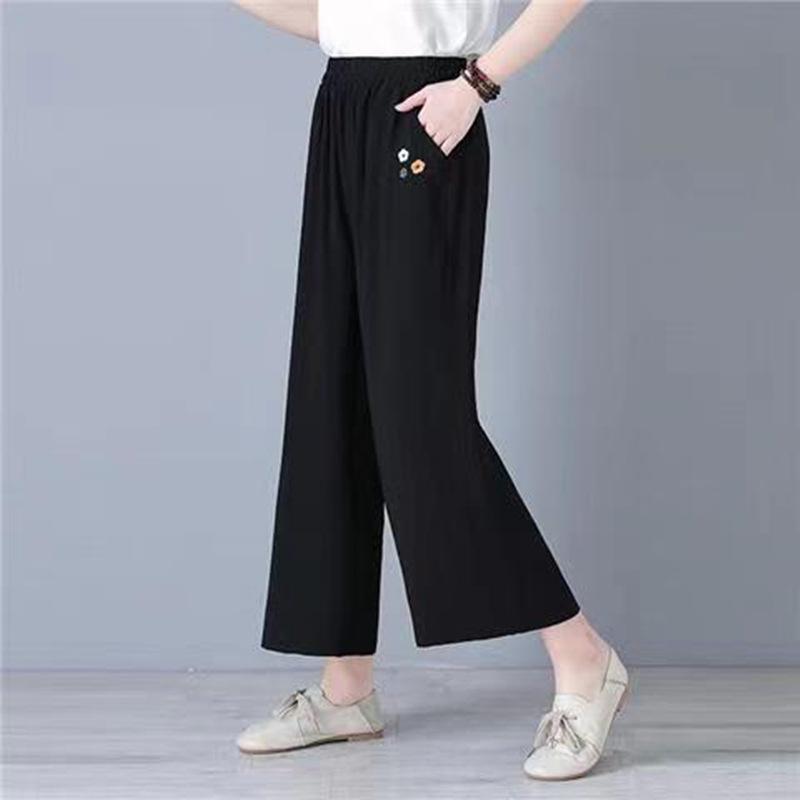 Летние женские свободные хлопковые и льняные брюки больших размеров, прямые эластичные повседневные широкие брюки с высокой талией и высокой талией 5XL чёрный