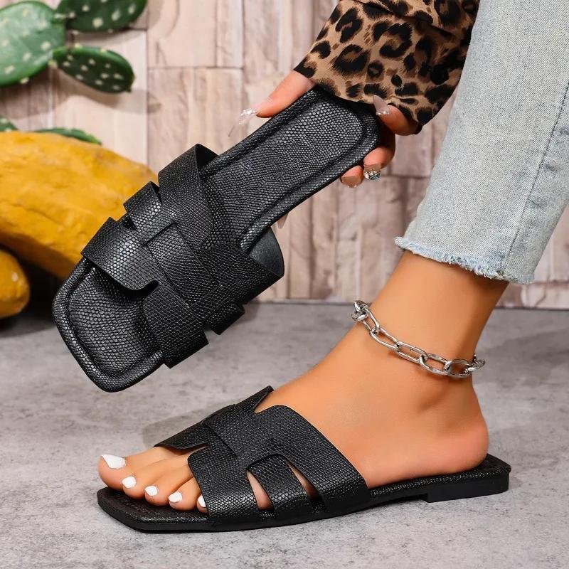 Летние женские тапочки Модные пляжные балетки Нового стиля Повседневные сандалии Платье для ходьбы Шлепанцы Открытый носок Слайды Zapatos Mujer 35 чёрный