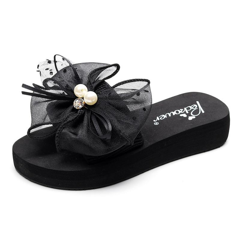 Летние женские шлепанцы на одно слово бабочка цветок женские пляжные туфли шлепки платформа женские сандалии танкетка нескользящие шлепанцы женщины 42 чёрный