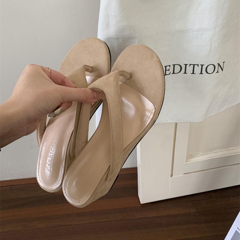 Летние женские шлепанцы на танкетке, уличные шлепанцы с перемычкой для пальца, женские повседневные сандалии для вечеринки 40 абрикосовый