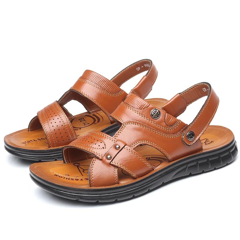 Летние мужские сандалии, мужские пляжные тапочки, износостойкая модная обувь для мужчин, дышащая мужская обувь, популярная модель 44 жёлтый