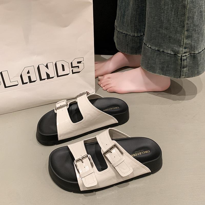 Летние новые корейские 2025 тапочки на толстой подошве, женские тонкие нескользящие пляжные шлепанцы, крутые шлепанцы 41
