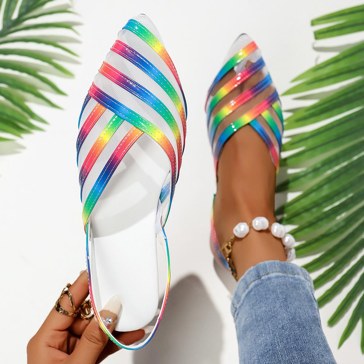 Летние новые сетчатые сандалии на плоской подошве с перфорацией, большие универсальные женские сандалии, модная пляжная обувь для отпуска 42 разноцветный