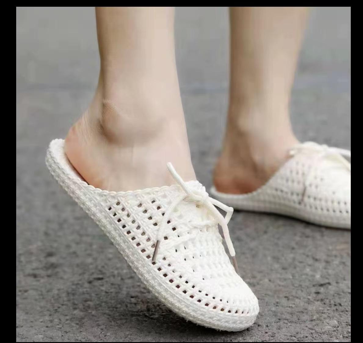 Летние новые тапочки женские с закрытым носком, полые, прохладные тапочки, женские на плоской подошве, для улицы, для дома, нескользящие, с мягкой подошвой, повседневные, с отверстиями 41 белый