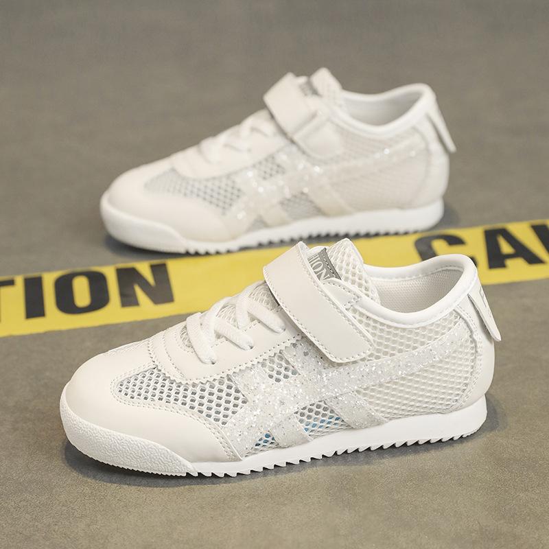 Летние одинарные сетчатые полые туфли для девочек в стиле Форреста Гампа, повседневная спортивная обувь для девочек младшего школьного возраста, дышащая, с крупной сеткой, легкие кеды 38 жемчужный