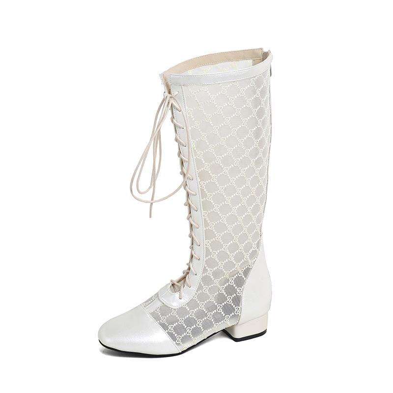 Летние прохладные ботинки женские туфли полые сетчатые ботинки высокие прохладные ботинки низкий каблук ремешок дышащие большой размер 39 бежевый