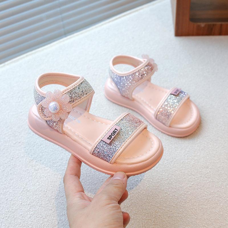 Летние сандалии Новая мода Универсальная обувь для девочек Комфортная обувь на мягкой подошве Дышащая детская обувь Изысканные блестки Красивая обувь принцессы 26insole16.5cm розовый