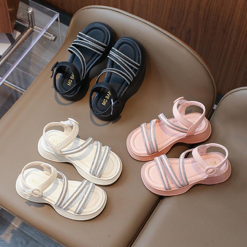 Летние сандалии для девочек, модные туфли принцессы со стразами, для детей старшего возраста, на липучках, для студентов, мягкая подошва, пляжная обувь 26 розовый