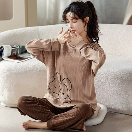 CoCopeaunt Spring womens long-sleeved pants set of loungewear combed cotton cute cartoon can be worn outside pajamas sleepwear women