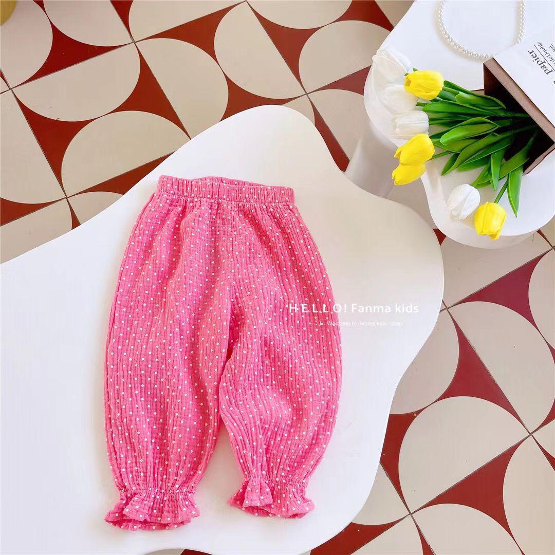 Летние солнцезащитные брюки для девочек в стиле ретро с цветочным принтом - пляжные брюки со средней и высокой талией и функцией защиты от комаров 140cm