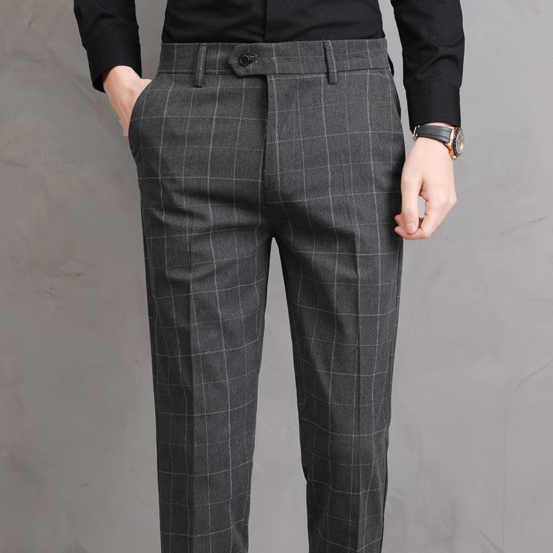 Летние тонкие брюки в клетку для формального платья, мужские, приталенные, для бизнеса, работы, офиса, вечеринки, Корея, узкие, повседневные брюки, мужские 28
