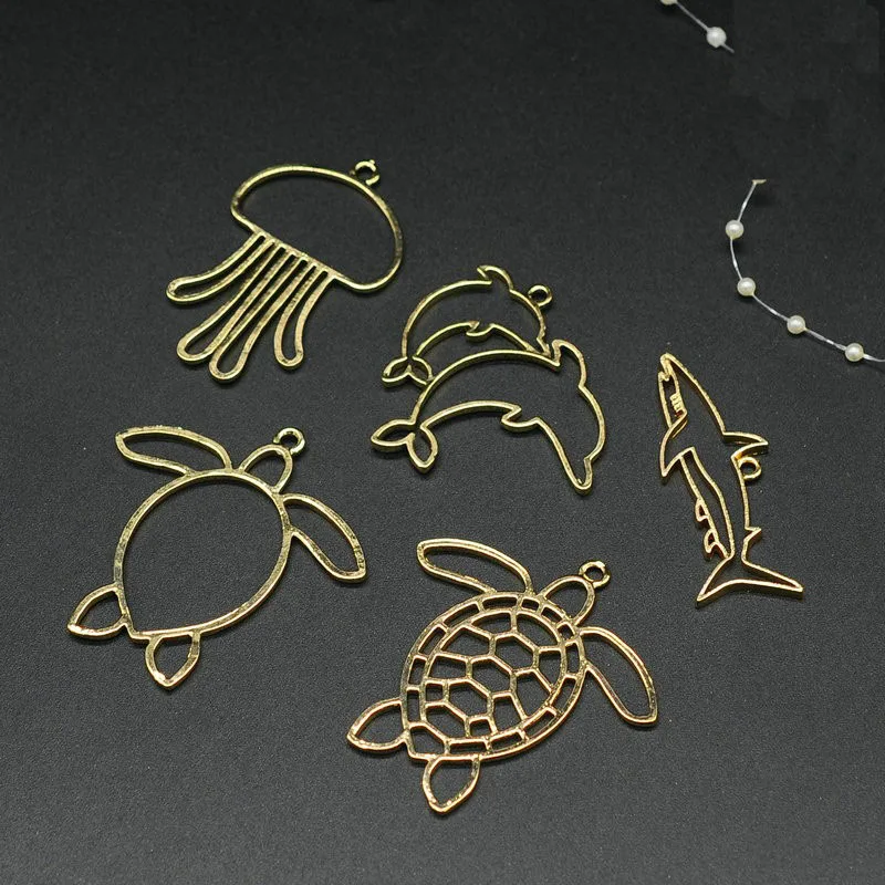 Large Turtle dolphin jellyfish shark Metal Frame Pendant Gold Charm Bezel Setting Cabochon Setting UV Resin Charm Jewelry Making