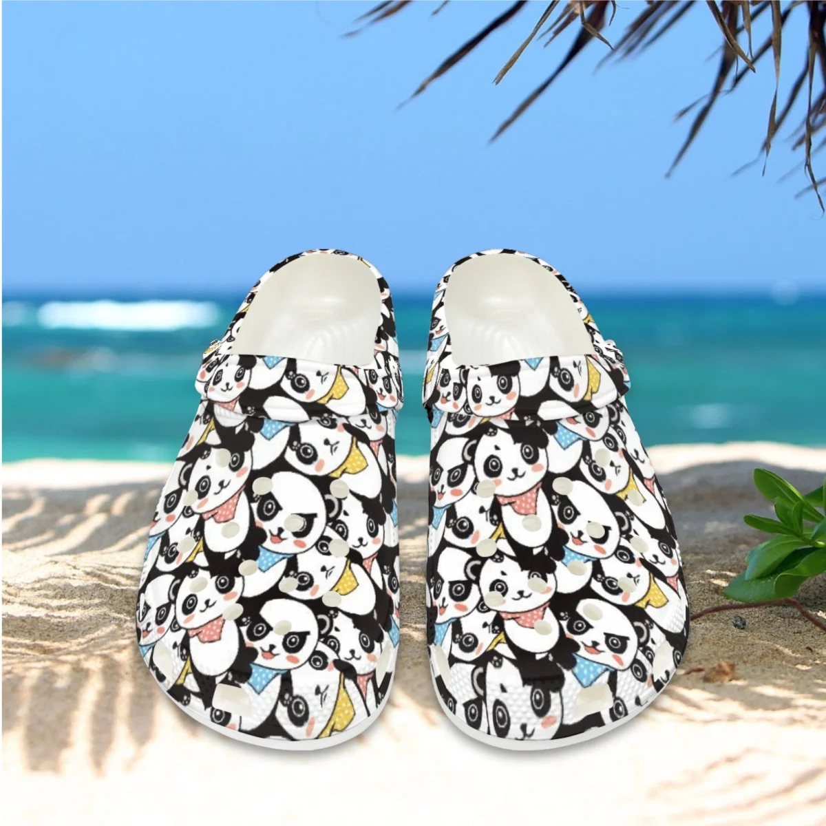 Летние уличные Нескользящие сандалии с рисунком панды, легкие дышащие пляжные туфли на плоской подошве, удобные шлепанцы для пар и помещени...