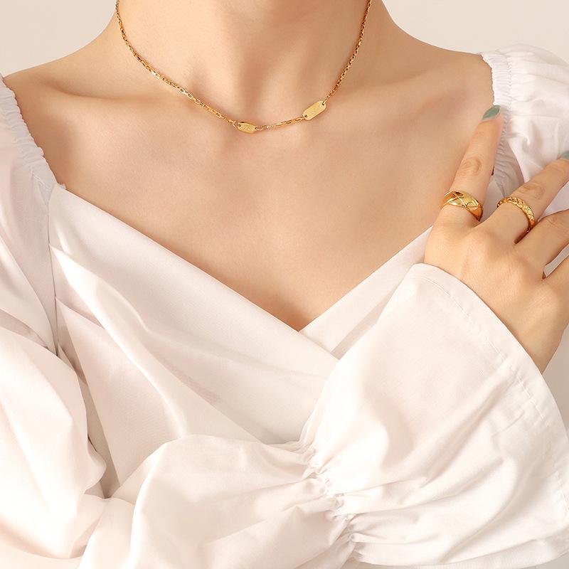 Летний ветер Осторожно Машина Notch Lucky Double Brand Ключичная цепочка, титановая сталь с покрытием из настоящего золота 18 карат P569