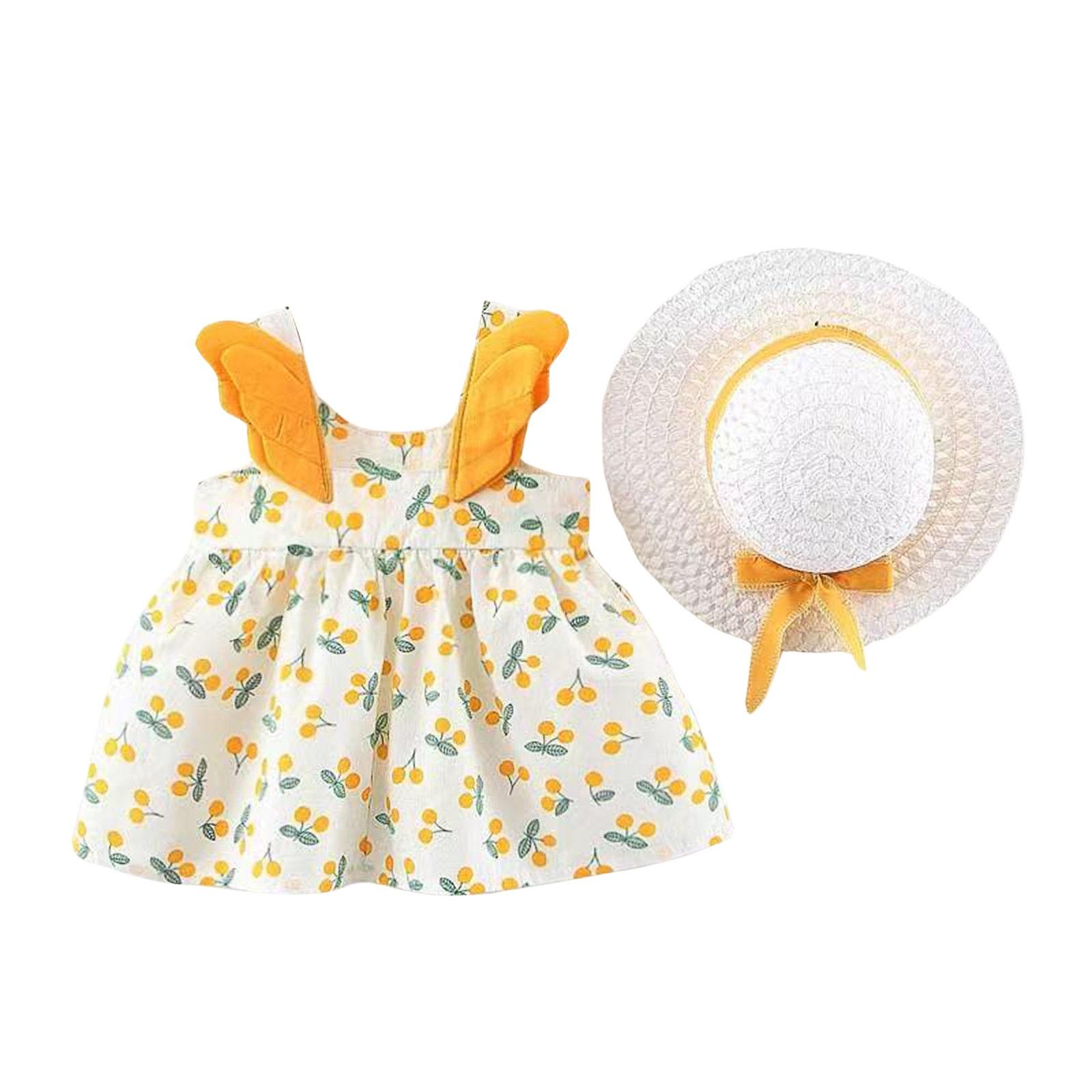 Летний комплект для девочек без рукавов с милым принтом принцессы в платье и шляпе 90 жёлтый