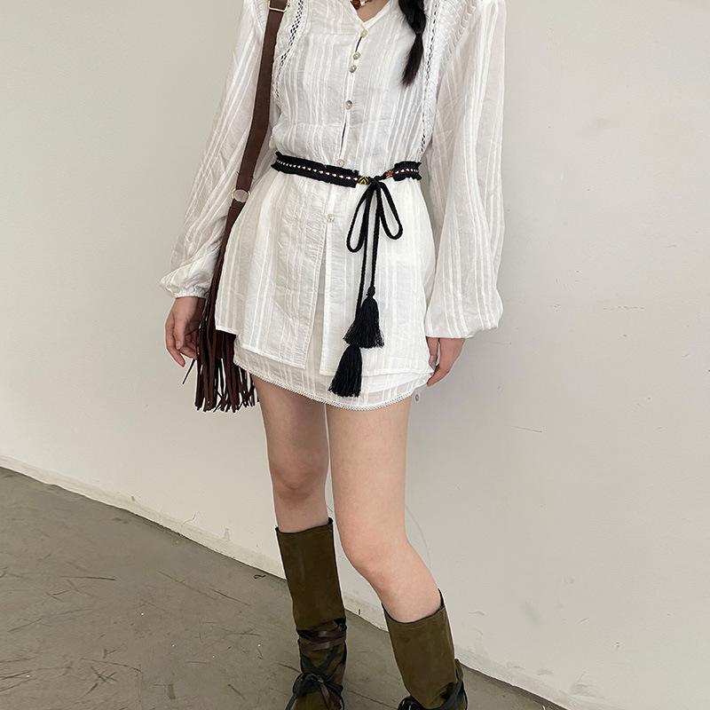 Летний пояс женский полый ретро этнический стиль украшение с платьем талия бахрома поясная веревка чёрный