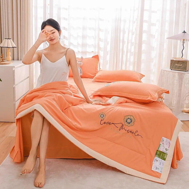 Летний приятный для кожи комплект постельного белья-холодильник, моющееся стеганое одеяло, простыни и наволочки, тонкое одеяло королевского размера с кондиционером 200x230cm-4pcs
