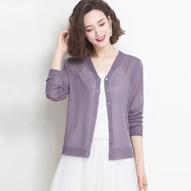 Летний темперамент Ледяной шелковый свитер с длинными рукавами Солнцезащитная одежда Тонкая однотонная универсальная рубашка с кондиционером Маленькая шаль Верхняя одежда S фиолетовый