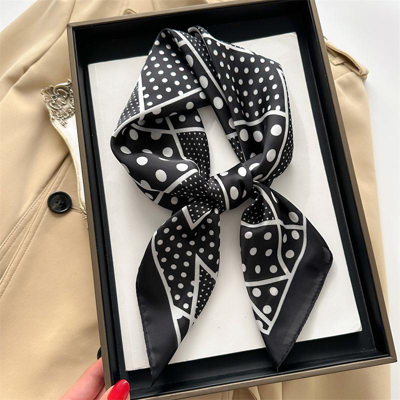 Летний шелковый платок с принтом в горошек Женский роскошный модный квадратный платок 70X70см Мягкая повязка для волос Головной платок Фуляр Шейный платок Повязка для волос Обмотки 70X70cm