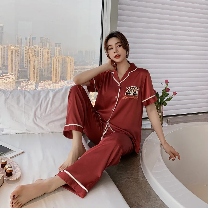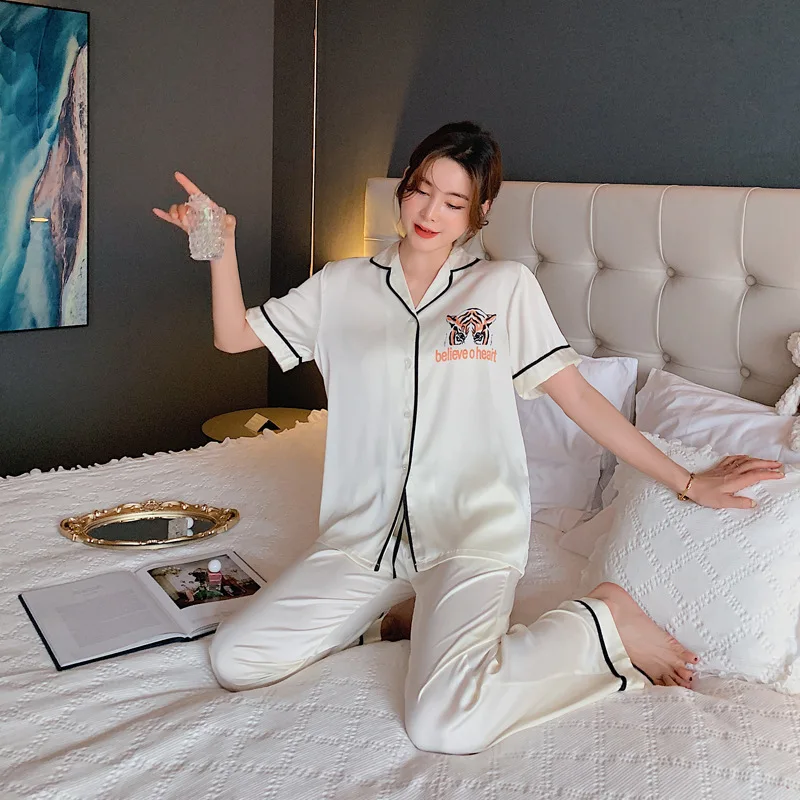 Летняя Роскошная модная Женская атласная пижама FZSLCYIYI с длинным рукавом и тигром, Пижама, одежда для сна, шелковая Домашняя одежда, ночное бе...
