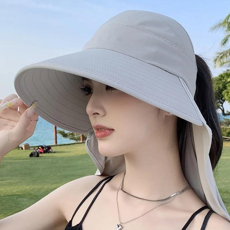 Летняя Солнцезащитная Шляпа Защита Шеи Полая Макушка Шляпа для Путешествий на Открытом Воздухе Защита от УФ Лучей Легкая Дышащая Элегантность Пляж Пешие Прогулки Туризм серый