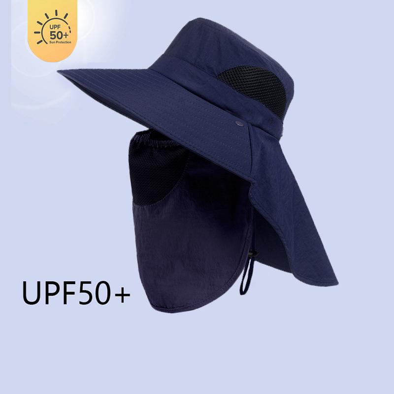 Летняя Солнцезащитная Шляпа Мужская Женская Хлопковая Шляпа Буни с Защитой Шеи Уличная Защита от УФ Лучей Большая Широкополая Шляпа для Пеших Прогулок, Рыбалки, Сафари, Панама темно-синий