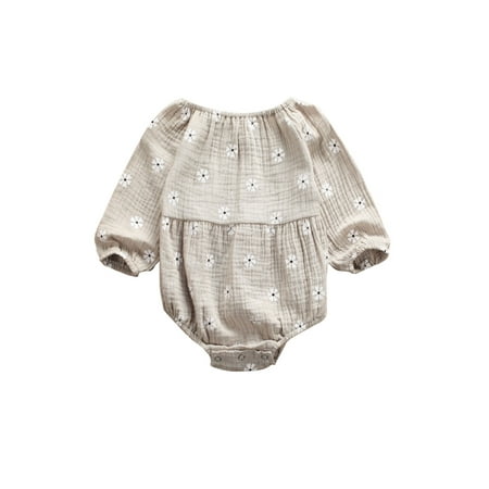 Yinyinxull Newborn Baby Girls Clothes Floral Romper Cotton Linen Bodysuit Jumpsuit Outfits Grey 18-24 Months
