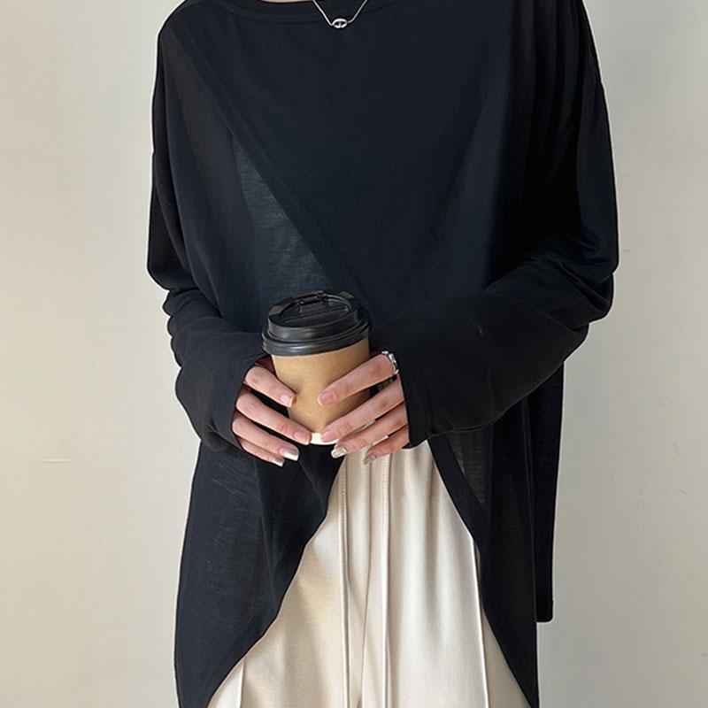 Летняя Элегантная Мода Харадзюку Приталенные Свободные Повседневные Футболки На Все Случаи Однотонные С Круглым Вырезом Тонкий Стиль Футболки с Длинным Рукавом ONESIZE чёрный