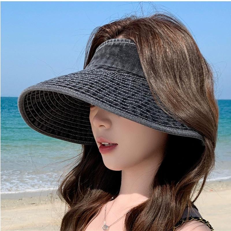 Летняя выстиранная джинсовая пустая шляпа, повседневная шляпа от солнца с ветрозащитной нитью, шляпы с большими полями для дам 56-58cm