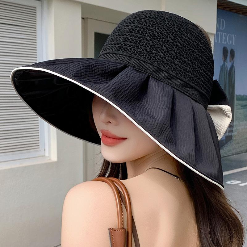Летняя двухцветная шляпа от солнца с большим бантом, модная, милая, дышащая, шляпа с пустой макушкой, шляпа от солнца с большими полями чёрный